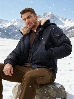 Мужская зимняя утепленная куртка с капюшоном