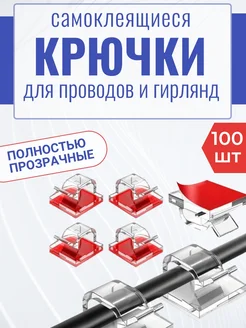 Крючки для проводов и гирлянд прозрачные 100 шт