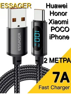 Кабель для турбо зарядки Type A C 7А с дисплеем 2 метра