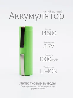 Аккумулятор Li-Ion 14500 АА 3.7В 1000мАч лепестковые выводы