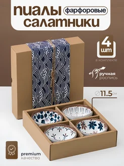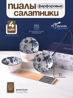 Набор салатников из фарфора праздничный подарочный пиалы 4шт