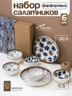 Набор салатников фарфоровых подарочный тарелки 6 штук