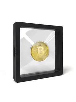 Монета Биткоин (Золото) в кейсе и чёрной рамке 11х11см