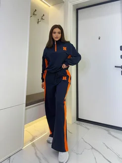 Спортивный тройка костюм больших размеров с брюками паллацо