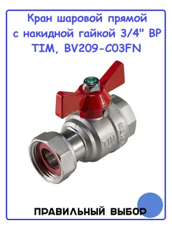 Кран шаровой прямой с накидной гайкой 3 4" ВР