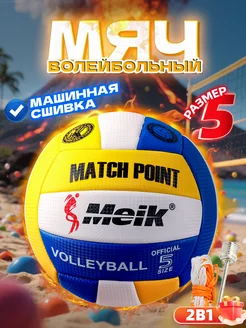 Волейбольный мяч 5 размера, бело-синий-желтый