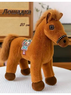 Мягкая игрушка плюшевая лошадь с седлом 20 см