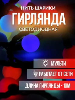 Электрогирлянда Нить каучук Шарик Мульти 100 LED 10м