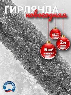 Гирлянда-мишура "Праздничная" д.35мм, дл.2м, 5 шт серебро