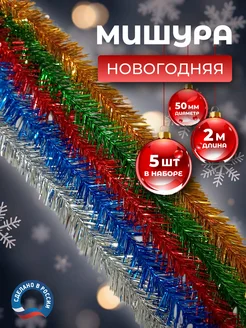Мишура № 9, д.50мм, дл.2м, пушистая 5 шт микс