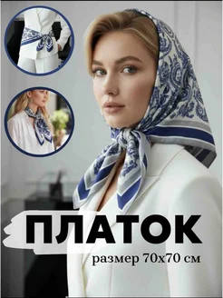 Шелковый платок гжель шейный косынка на голову пояс и шею