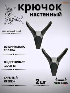 Крючок для одежды настенный двойной дизайнерский Бык Серый