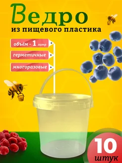 Ведро пластиковое пищевое 1 л с крышкой 10 штук многоразовое