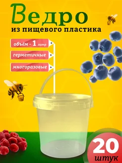 Ведро пластиковое пищевое 1 л с крышкой 20 штук многоразовое