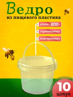 Ведро пластиковое пищевое 800мл с крышкой 10 шт многоразовые
