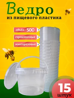Ведро пластиковое пищевое 0 5 л с крышкой 15 шт многоразовые