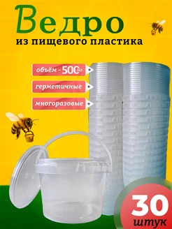 Ведро пластиковое пищевое 0 5 л с крышкой 30 шт многоразовые