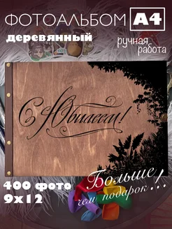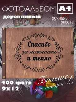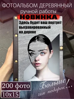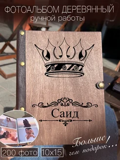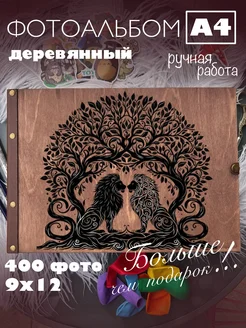 Фотоальбом большой кольцевой из дерева и кожи львы