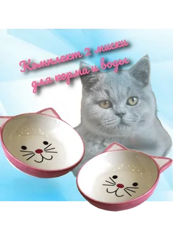 Миска Довольная Кошка Набор 2шт керамическая230мл