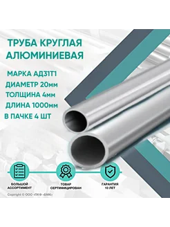 Труба алюминиевая АД31Т1 ф20х4х1000мм в пачке 4шт