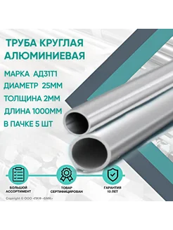 Труба алюминиевая АД31Т1 ф25х2 длиной 1м в пачке 5шт