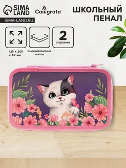 Пенал 2 секции 125x205x40 мм "Кот в цветах"