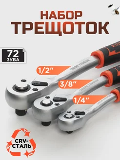 Ключ трещотка 1 4, 3 8, 1 2, набор 3 шт