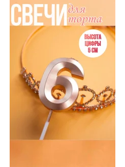Свеча для торта "Розовое золото" - цифра 6
