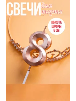 Свеча для торта "Розовое золото" - цифра 8