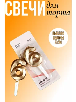 Свеча для торта "Золото" - цифра 6