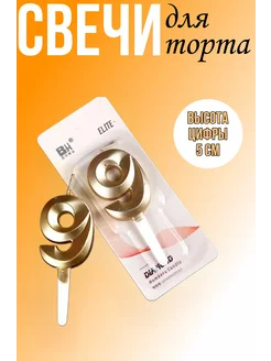 Свеча для торта "Золото" - цифра 9