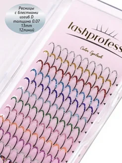 Ресницы с блестками C 0.07 8-15mm&Mix 12линий, синие