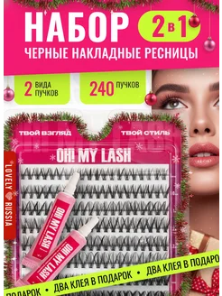 Набор черных накладных ресниц c клеем, пучки Twins 30d, 40d