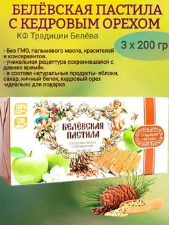 Пастила белёвская с КЕДРОВЫМ ОРЕХОМ, 3 х 200 гр