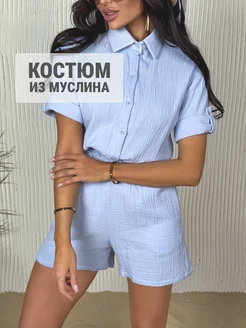 Костюм летний с шортами и рубашкой с коротким рукавом муслин