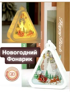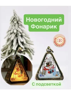 Рождественский Ретро фонарь светящийся Упряжка Деда Мороза