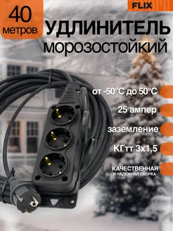 Удлинитель силовой 3 розетки, 40 м, КГТТ 3х1,5 морозостойкий