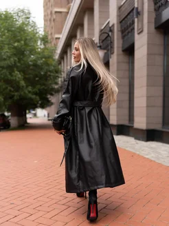 Плащ кожаный длинный с поясом