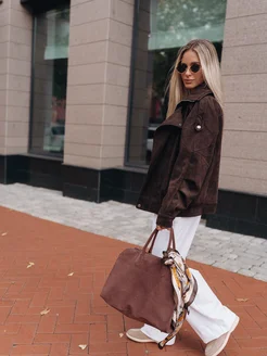 Куртка бомбер оверсайз замшевый весна-осень