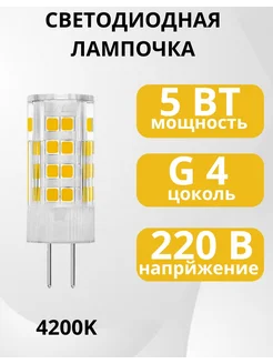 Светодиодная лампочка G4 из силикона, 4 Вт, 4200K (5 шт.)