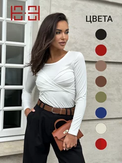 Лонгслив облегающий в рубчик с драпировкой узлом