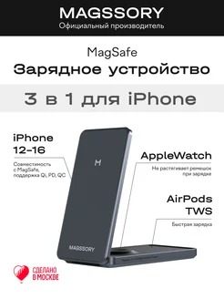 Складное беспроводное зарядное устройство 3 в 1 Qi2
