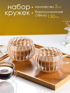 Кружки для чая стеклянные 400 мл в наборе 2 штуки