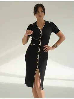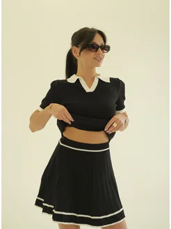Костюм двойка с юбкой трикотажный офис вязаный летний