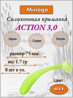 Силиконовая приманка ACTION 3,0", 8 шт, цвет 024