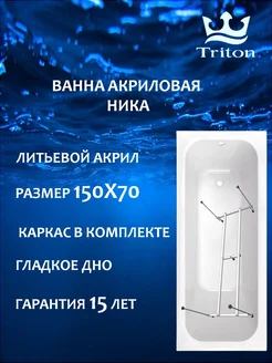 Ванна акриловая Ника 150х70 в комплекте с каркасом