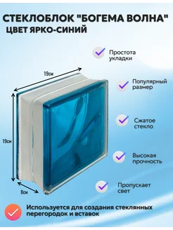 Стеклоблок Богема Волна ярко-синий