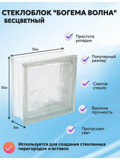 Стеклоблок Богема Волна бесцветный прозрачный