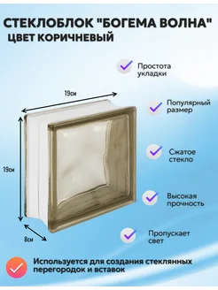 Стеклоблок Богема Волна коричневый