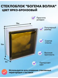 Стеклоблок Богема Волна ярко-бронзовый